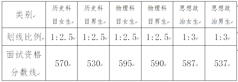 面试资格分数线按考生从高分到低分排序,排除不符合报考条件的考生后,分组按计划数一定比例划定,具体资格分数线如下: