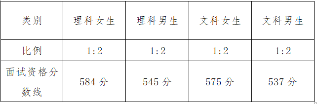 面试资格分数线按报考考生从高分到低分排序,排除不符合报考条件的考生后,分组按计划的一定比例划定,具体资格分数线如下: