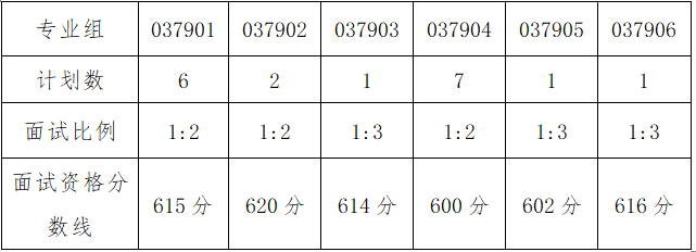 面试资格分数线按报考考生从高分到低分排序,排除不符合报考条件的考生后,分组按计划数的一定比例划定,具体资格分数线如下: