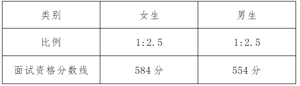 面试资格分数线按报考考生从高分到低分排序,排除不符合报考条件的考生后,分组按计划数的一定比例划定,具体资格分数线如下: