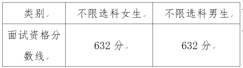 面试资格分数线按报考考生从高分到低分排序,排除不符合报考条件的考生后,分组按计划数1:2的比例划定,具体资格分数线如下: