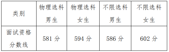 面试资格分数线按报考考生从高分到低分排序,排除不符合报考条件的考生后,分组按计划数1:2的比例划定,具体资格分数线如下: