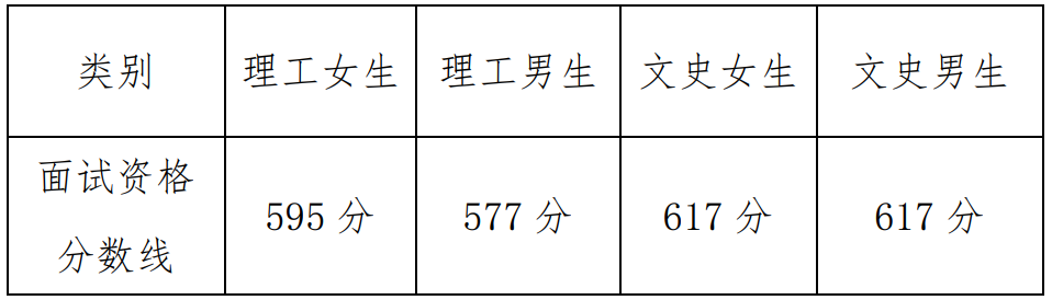 面试资格分数线按报考考生从高分到低分排序,排除不符合报考条件的考生后,分组按计划数1:2的比例划定,具体资格分数线如下: