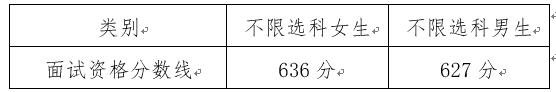 面试资格分数线按报考考生从高分到低分排序,排除不符合报考条件的考生后,分组按计划数1:2的比例划定,具体资格分数线如下: