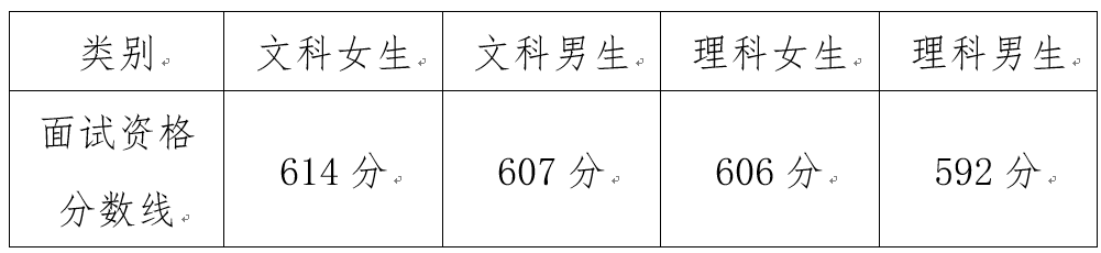 面试资格分数线按报考考生从高分到低分排序,排除不符合报考条件的考生后,分组按计划数1:2.5的比例划定,具体资格分数线如下: