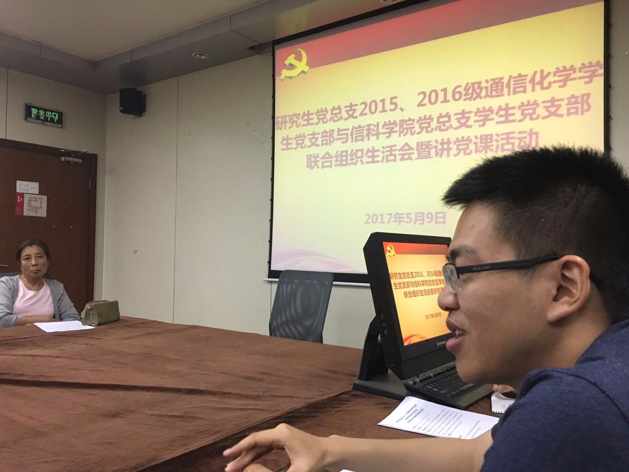 学生党支部联合研究生支部举行组织生活会暨讲党课活动 5月10日晚上6点30,学院学生党支部和研究生党总支2015级通信化学学生党支部、2016级通信电信化学学生党支部于学术交流中心第一会议室举行了组织生活会暨讲党课活动。...