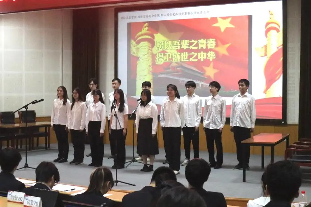 为深入开展学习贯彻习近平新时代中国特色社会主义思想主题教育,5月10日晚,网络空间安全学院于学术交流中心第二放映厅举办了党史知识竞赛暨合唱比赛。本次活动邀请到国际关系学院副院长毕雁英教授、人事处处长(组织部部长)陈斌老师、保卫处处长朱小京老师、校团委书记吴启春老师、网安学院副院长杨良斌老师和网安学院辅导员贾卫城老师。学生党员以及网络空间安全学院2020、2021、2022级6个支部的全体学生参加活动。