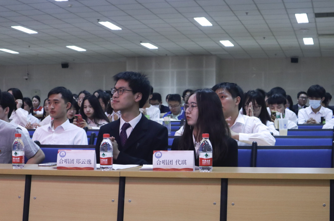 首先是合唱比赛,合唱曲目由各团支部自由选题,评委由朱小京老师以及校合唱团两位团长代琪同学、郑云逸同学担任。《我们都是追梦人》、《歌唱祖国》、《国家》、《我和我的祖国》、《团结就是力量》、《强军战歌》六首同学们精心准备的曲目展现着青春之声。参赛队员们身着统一服装,整个表演中洋溢着青春活力与爱国情怀。在他们的歌声中,台下观众的爱国之心也被点燃,爱国爱党信念也更加坚定了。
