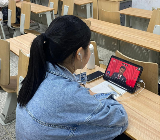 习近平总书记所作的报告高瞻远瞩、气势磅礴、思想深邃、内涵丰富,是新时代新征程坚持和发展中国特色社会主义的政治宣言,是全面建设社会主义现代化国家、全面推进中华民族伟大复兴的行动指南。“报告号召全党要把青年工作作为战略性工作来抓,用党的科学理论武装青年,用党的初心使命感召青年。这让我们深切地感受到党中央的关怀和重视。我们青年一代要牢记习近平总书记的教诲,坚定理想信念、立志民族复兴,勇当开路先锋、争当事业闯将,争取跑出当代青年的最好成绩。