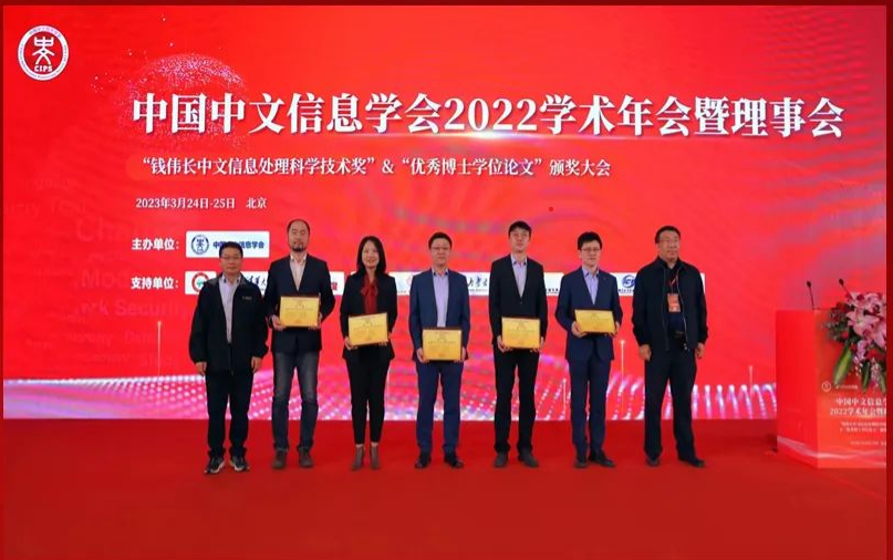 2023年3月24日-25日,中国中文信息学会2022学术年会暨理事会在北京隆重举行,会上颁发了“钱伟长中文信息处理科学技术奖”和“青年创新奖”。网络空间安全学院李斌阳教授、李岩副教授参与的“面向粤港澳大湾区的多语言社交媒体分析技术研发及产业化”项目获得钱伟长中文信息处理科学技术一等奖,李斌阳教授获得2022年钱伟长中文信息处理青年创新奖。