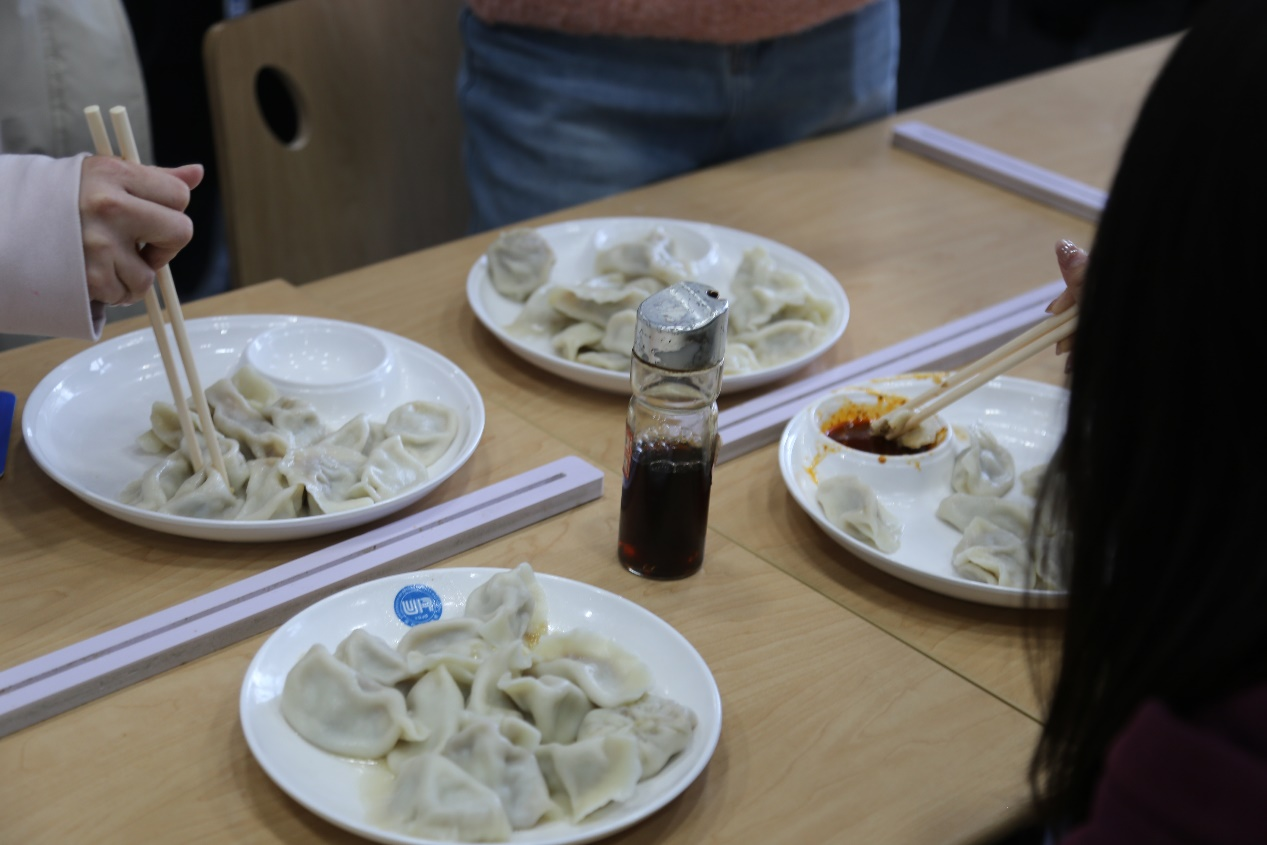 饺子出炉,香气四溢,网安师生们交流起各地不同类型的饺子蘸料,同学们更是纷纷表示自己亲手包的饺子味道格外美味,仿佛尝到了家的味道。盘中一只只小小的水饺,背后是浓浓的温情。