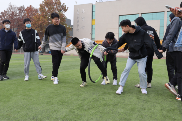 规则:数据班和网安班的同学手拉手站成一排,比赛开始前,由排头第一人手持呼啦圈。开始后,在保持每名同学之间不松手的前提下,可用任何方式(注:必须经过每一名队员)将呼啦圈穿越整个队伍,按时间快慢决出名次。