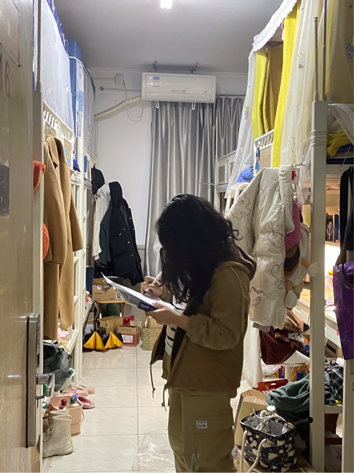 李岩老师和唐鑫老师与文体部的成员一同前往了润学楼的6个宿舍,细致检查卫生状况和违规电器使用情况,并且积极交流日常生活所的存在问题,共同提出解决方法,提高了同学们的校园生活体验感。