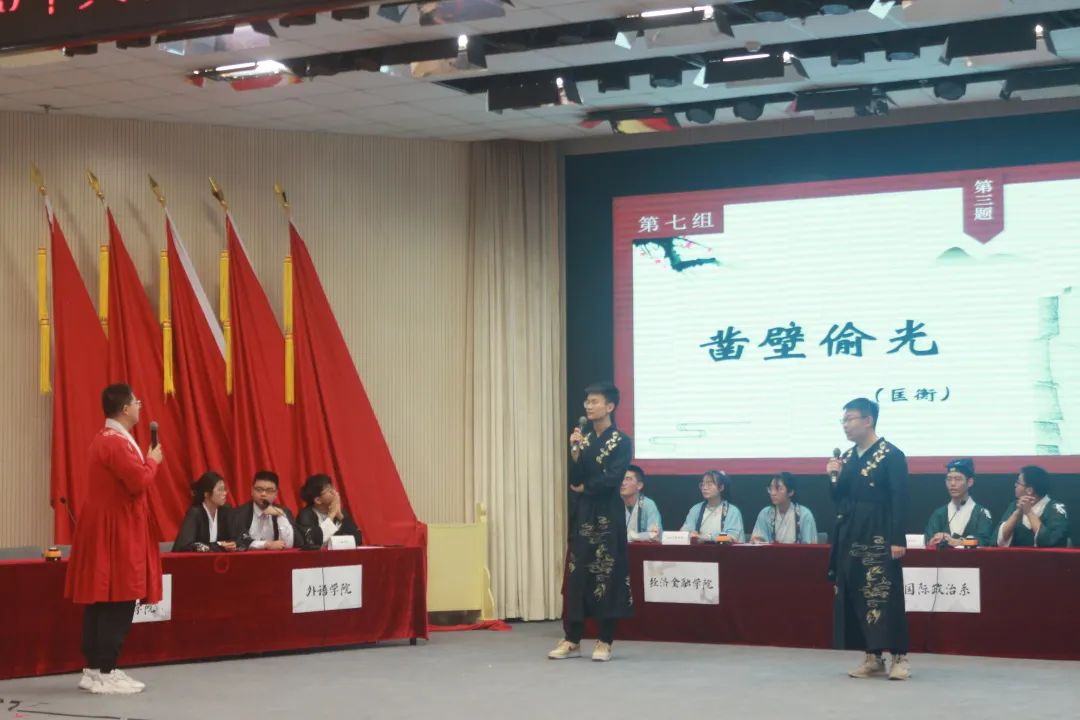 2023年5月10日14:30 国际关系学院“千曲晓声,千文观道”第七届国学文化大赏在学术交流中心第一放映厅举办。来自七个院系的代表队同学参与了本次活动,其中网络空间安全学院的三位参赛选手在形式多样的活动中激烈角逐、表现优异,最终勇夺桂冠!
