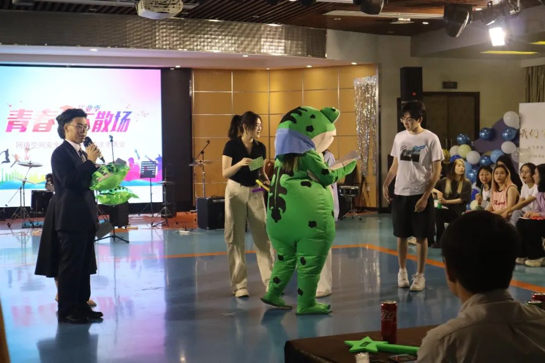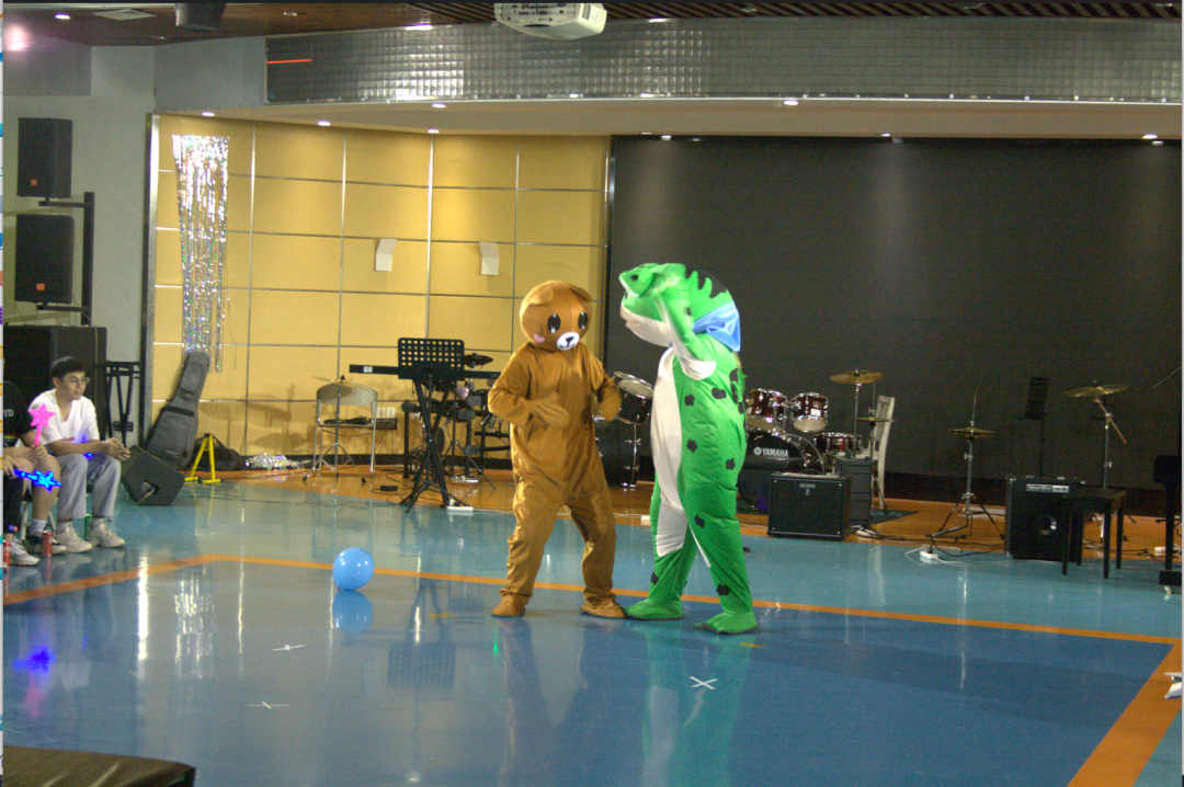 休息很快就在孙博洋同学绵延悠长的钢琴声中过去了,接下来由两位21级的同学装扮的“蛙蛙”和“熊熊”带来精彩的舞蹈。