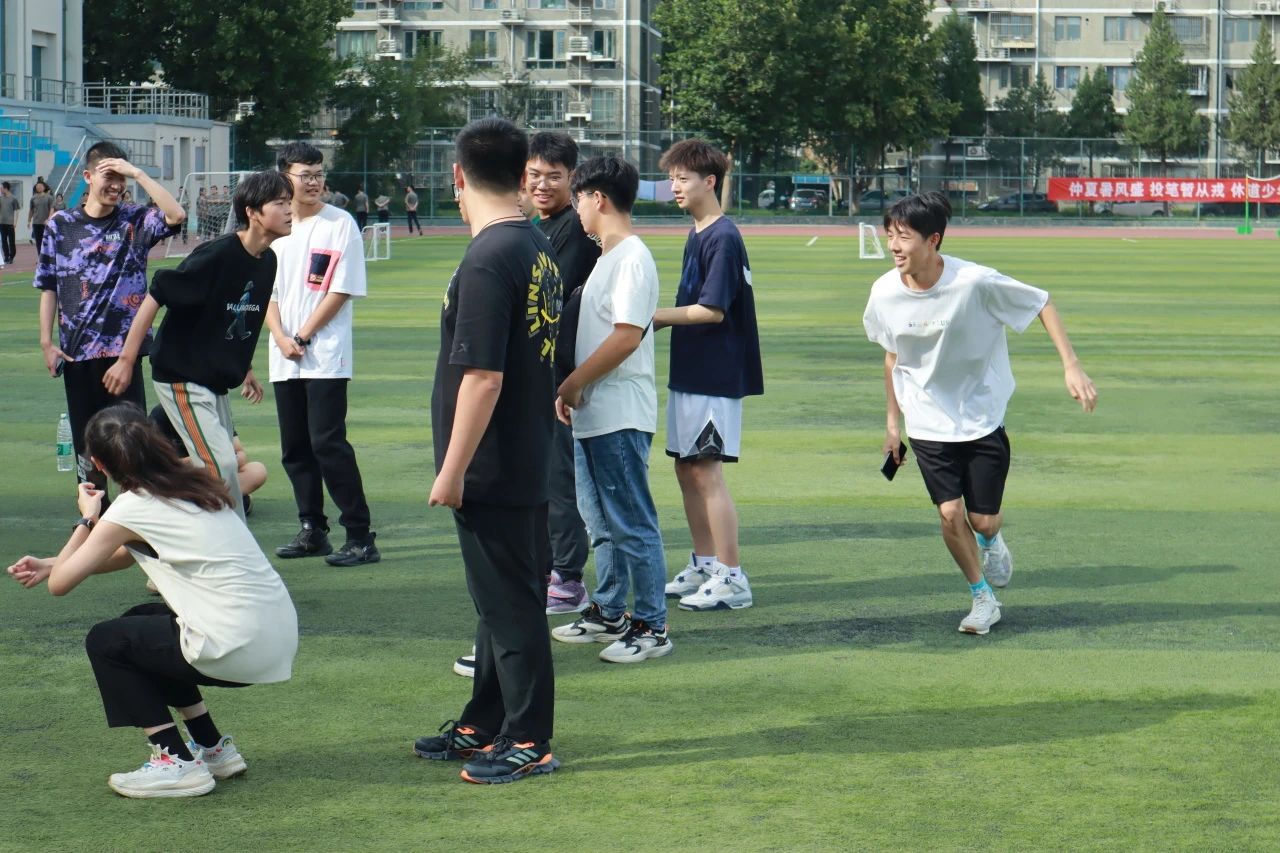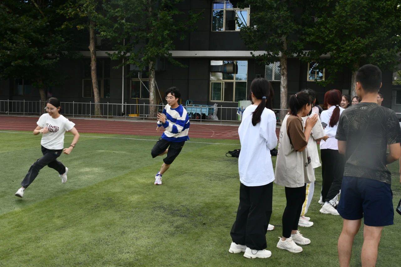 最后一个游戏是贴膏药。尽管不少同学表示从没玩过,但大家依旧磨拳擦掌做着准备活动。游戏开始后,男生们颇具绅士风度,追逐女生时会稍稍放慢脚步,也有同学在追逃身份调转的时候故意让对方抓到,借此让对方休息,场上洋溢着和睦的氛围。在快速奔跑中,许多女同学也展现出矫健的身手,挥洒出一抹靓丽的青春色彩。追、逃、贴,简单的游戏也让大家记住了身边同学的模样和声音。