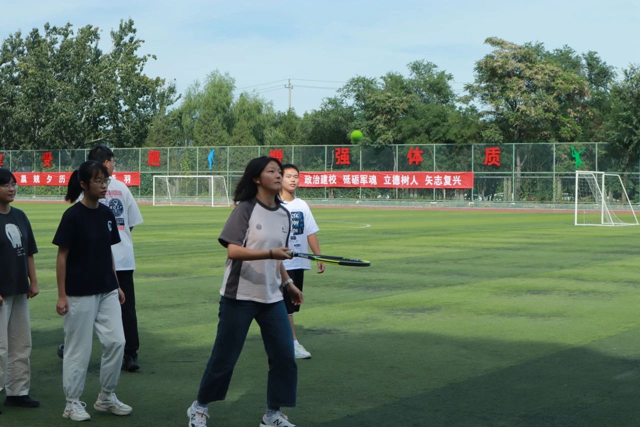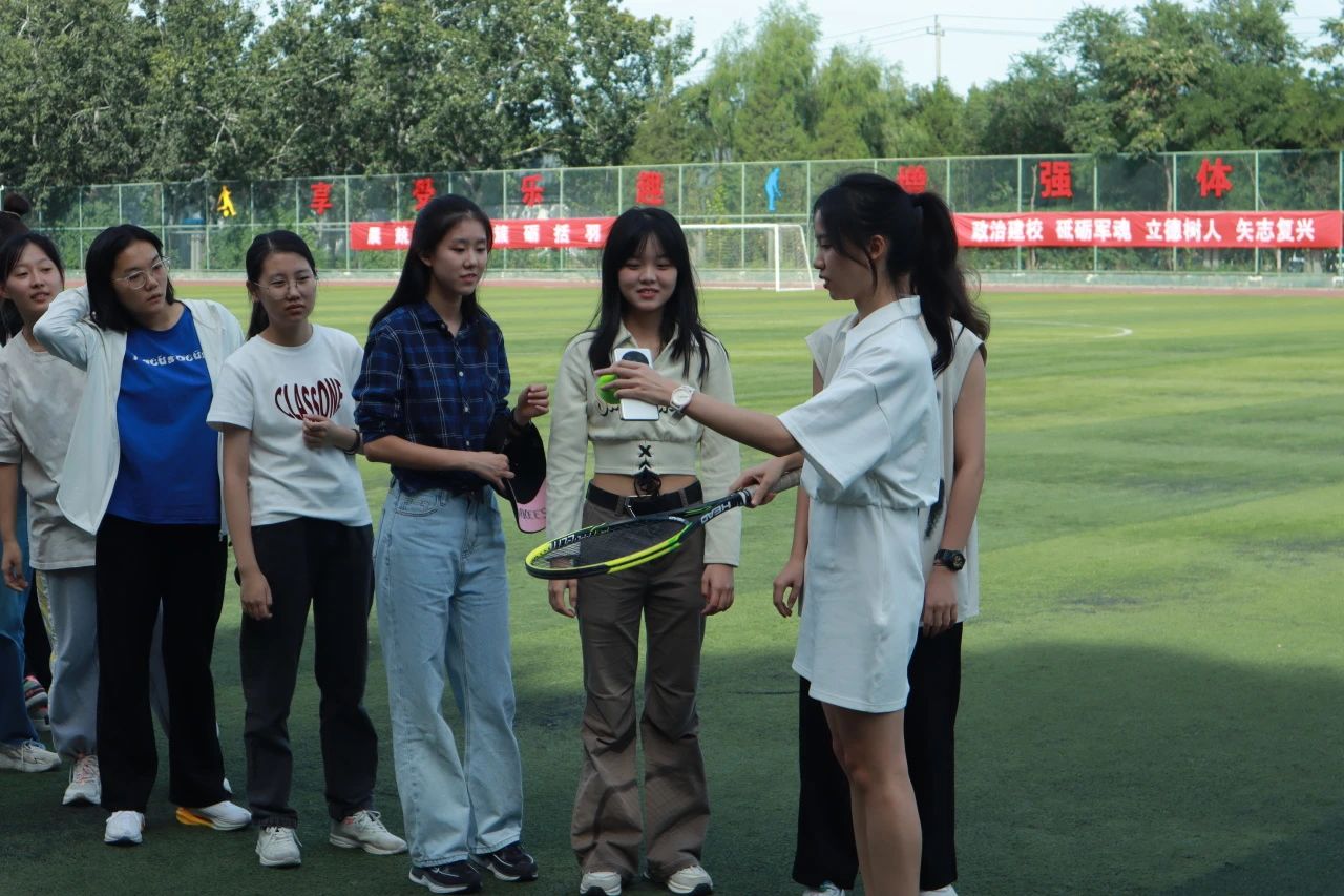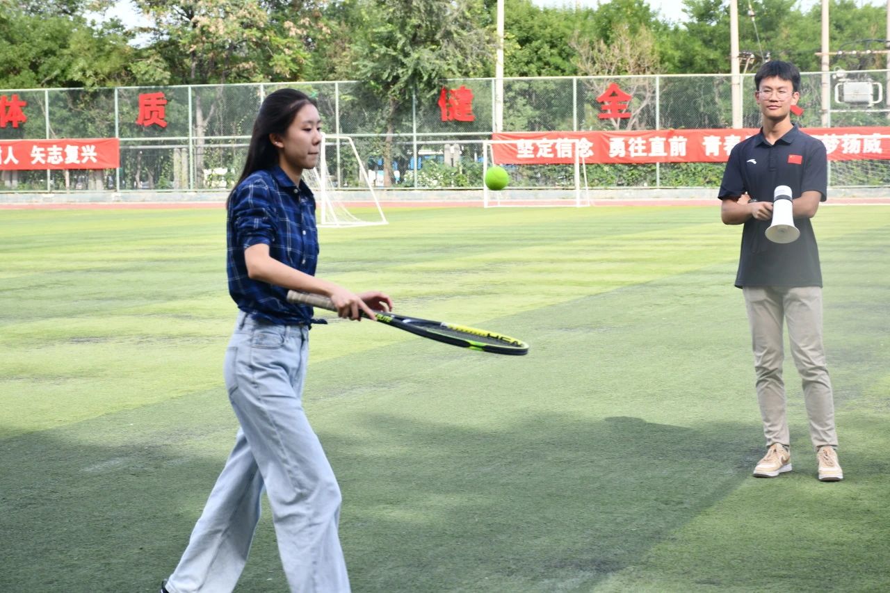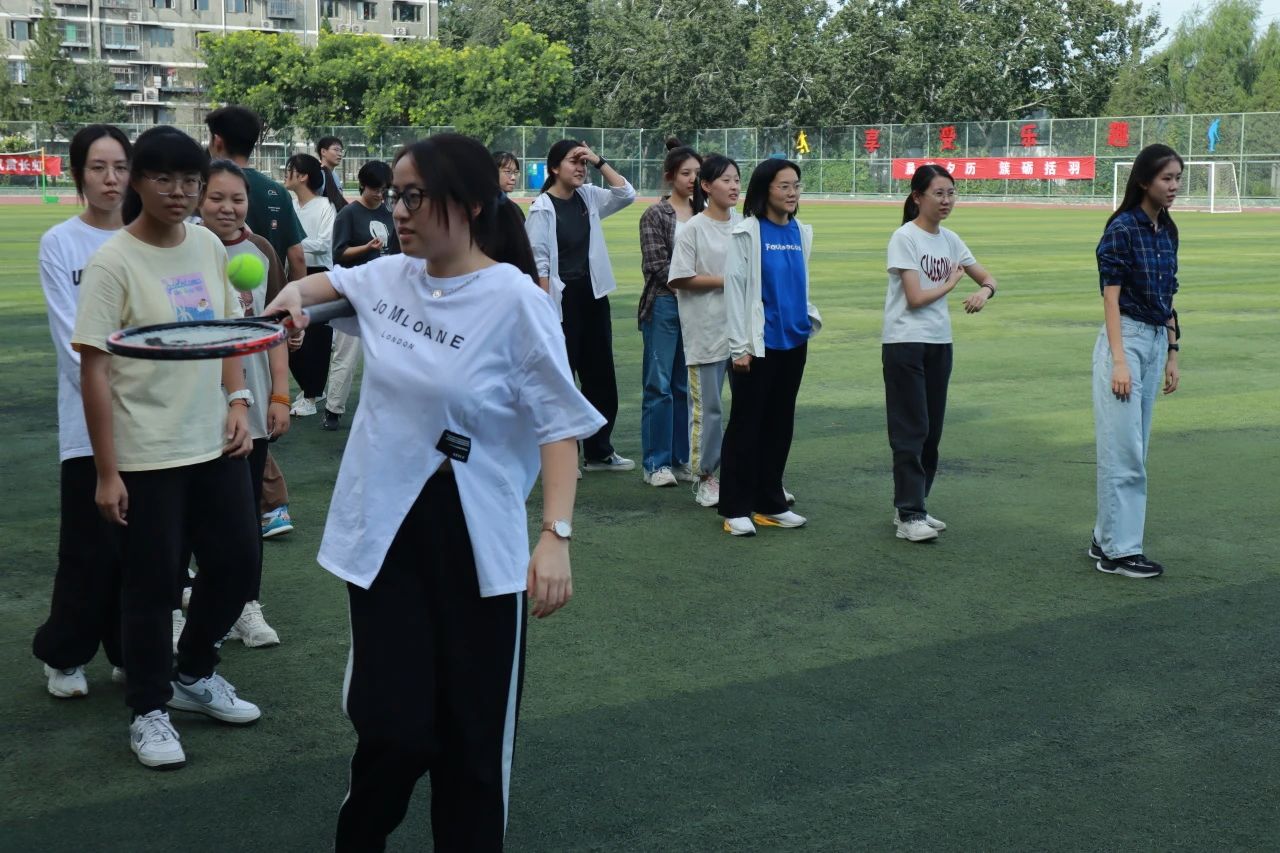 接下来是一个技巧性游戏:颠网球。同学们需要接力把网球运到指定地点。虽然已经提前练习,但是正式比赛时还是比较紧张,大家的动作仍然稍显生疏。但他们上手很快,慢慢地由走转变为跑。比赛过程十分激烈,双方最后一棒在同学们此起彼伏的加油呐喊声和欢声笑语中同时到达终点。