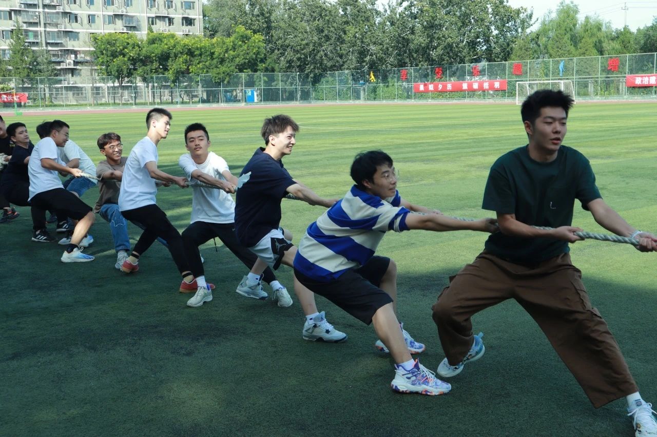 开场热身游戏是拔河比赛。网安班数据班分别列阵,所有同学屏息以待。随着裁判一声哨响,拔河大赛一触即发,操场上响起一阵阵此起彼伏的加油声,在激烈的抗衡下,数据班拿下第一局,暂时领先。第二局,双方交换了场地和选手,在上一局取得胜利的数据班再次获胜,最终比分来到了2:0,虽然比分暂时落后,网安班同学毫不气馁,依然斗志昂扬。随后两个班进行女女对决和男男对决。经历了前两场的失利,网安班吸取教训,在接下来的对决中扳回了比分。阳光洒下来,大家脸上都洋溢着灿烂的笑容,互相之间的情感也迅速升温。