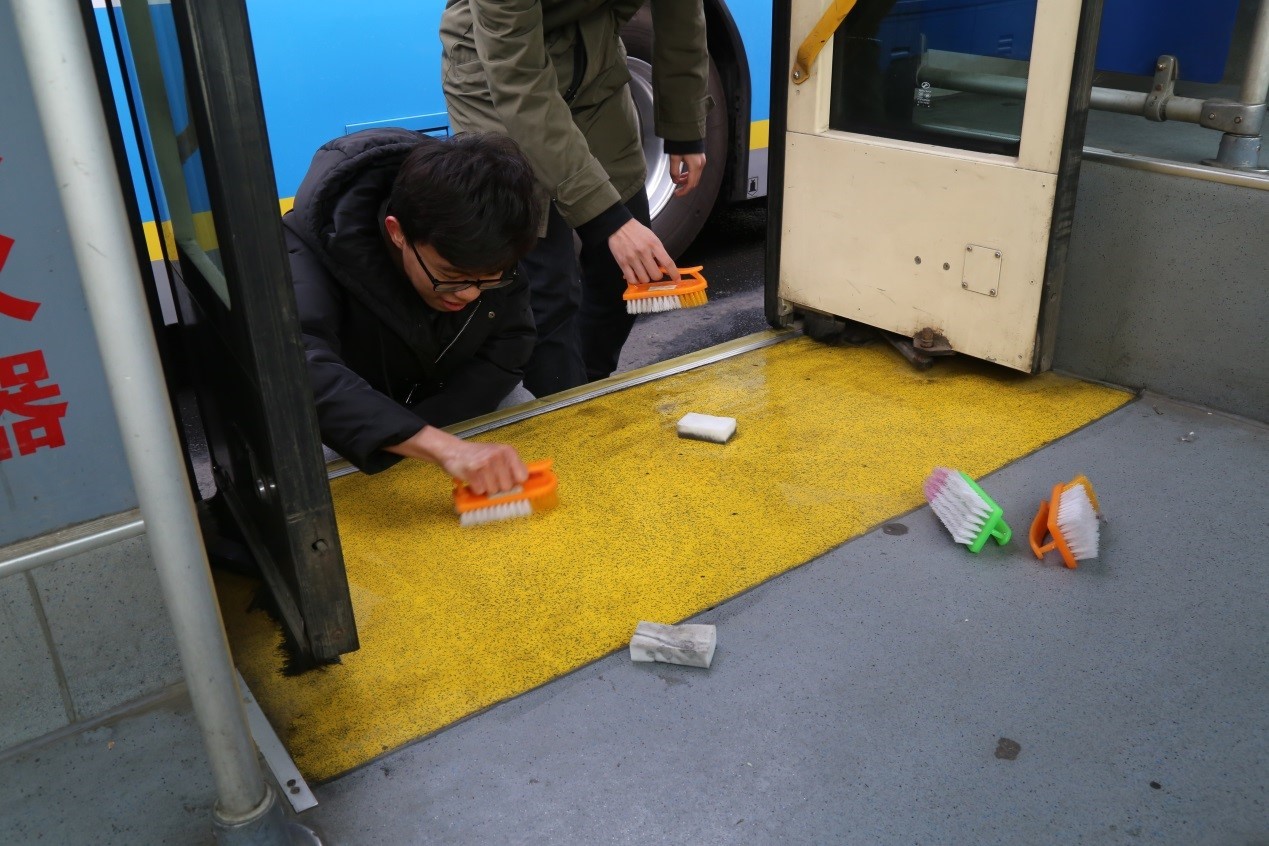 为了响应号召,国际关系学院网络空间安全学院的同学们早上8:30来到了与校园毗邻的颐和园公交站,带上抹布,拎上水桶,为303、579和508路公交车做志愿清洁工作。
