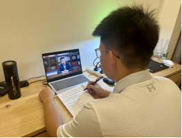 2022级中共预备党员吴帅铮、陈依扬、崔汀结合他们在中非合作论坛期间的志愿服务经历进行分享。这次志愿是一次对自身综合素质的检验,更是一场别开生面的爱国主义教育——生逢盛世,青年人使命在肩。虽然服务在不同的工作岗位上,但三位党员一致地表示,这次志愿服务是一次值得铭记一生的体验,能参与到中国近年来举办的规模最大、外国领导人出席最多的主场外交活动中,为中非合作论坛的成功举办贡献自己的力量,每一个志愿者都倍感光荣。
