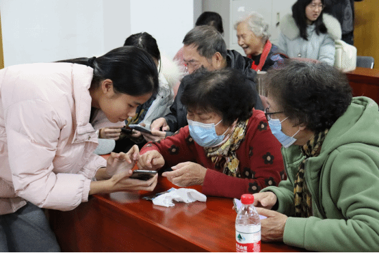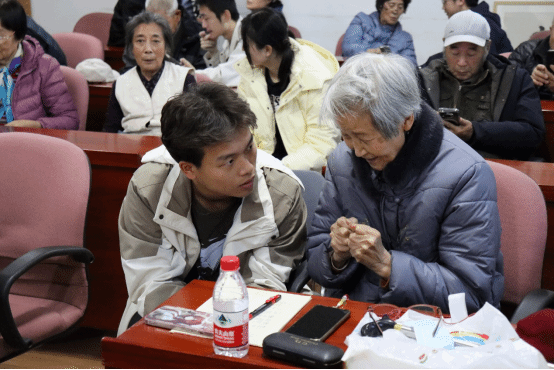 在互动环节,学生志愿者们热心为退休教师们答疑解惑,让微信中添加联系人不再是苦恼,导航上的地图不再是令人头晕的曲线,手机里的突然出现的弹窗不再是阻碍……老教师们脸上的笑容让我们感受到,“网数智”也可以是富有人情味的,而不是一行行冰冷的代码。交错的网络不仅拓宽了生活广度,也在人与人的交互间拓展了生活的的厚度。
