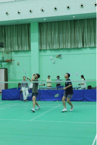 羽毛球场上,同学们个个身姿矫健,轻盈地跳跃、挥拍。时而打出潇洒的高远球,时而打出凌厉的扣杀。