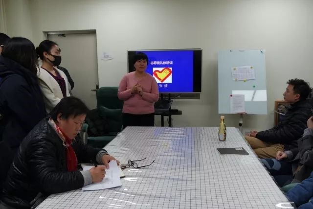 首先,张老师告诉同学们:遵时守约、公平对待、真诚适度、宽容自律、尊重习俗,是我们作为一名合格的大学生志愿者,必须要做到的,礼仪是最重要的精神风貌。
