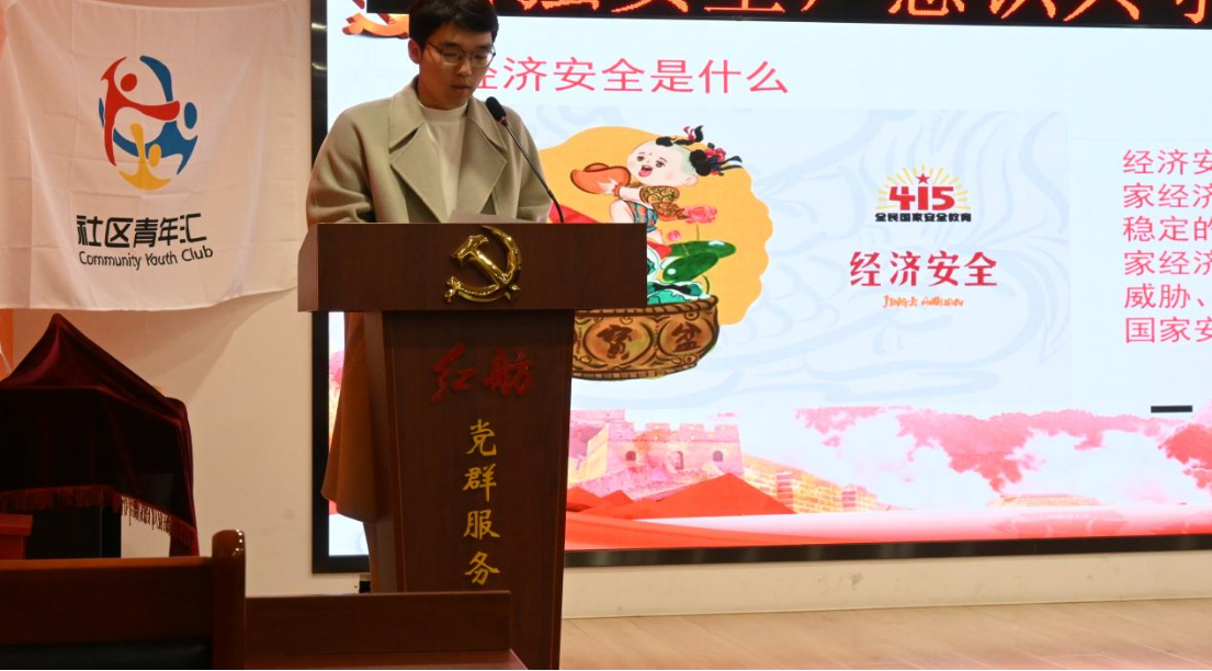 第三位宣讲的是于丰源同志,他重点讲述了经济安全的基本理论和重要意义。他从平常人的衣食住行,教育医疗等方方面面阐述了经济安全的重要性。同时,他也强调了来自内外部的各种挑战和风险依旧存在,并且介绍了党中央和政府在确保经济安全方面的几个重心。最后,于丰源同志鼓励大家在未来可以积极投身于经济安全建设,为实现国家的长期繁荣和稳定贡献自己的力量!