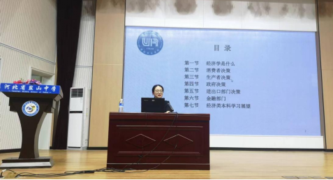 刘倩副教授和朱珠老师,为盐山中学480余名师生开展了“走近经济学”和“英语+”专题讲座,魏斌主任就国际关系学院招生和专业设置进行了宣讲。