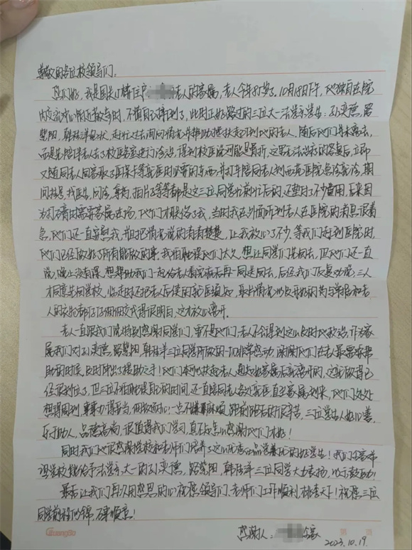 直至家属到来后,三人仍坚持帮助到底。在家属的再三劝说后,三人才在交代好所有细节后自行离去。