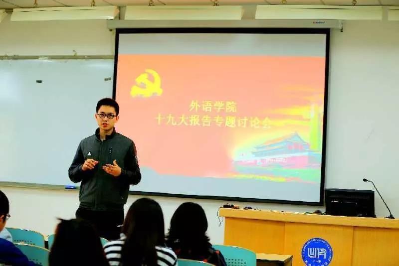 有的同学从十九大报告中提及的,过去五年的工作和历史性变革中的,我国社会主要矛盾已经转化这一点拓展开来,充分意识到我国社会主要矛盾的变化是关系全局的历史性变化,由此引申到在这一历史性变化的大背景下,作为国关外院学子,应当坚定不移地肩负起一个新时代青年学子对国家的责任,结合专业优势,用外语讲好中国故事,把中华优秀地传统文化更好地展示给全世界!