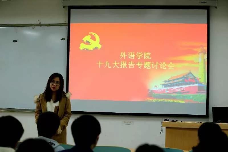 2017年10月20日下午四时,外语学院学生党支部在教学楼333室,召开了外语学院学生党员学习“十九大”报告讨论会,本次会议以十九大报告专题讨论为主题,由外语学院党总支副书记芮雪源老师主持,辅导员苗青老师也出席了本次会议。
