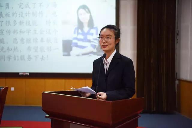 外语学院党总支副书记芮雪源老师对外院第四届学生会过去一年来的工作成果作了充分的肯定,并对学生会成员的辛勤付出表示感谢。她讲道,学生会作为师生间沟通的桥梁和纽带,大大便利了学院学生工作的开展,也使得学院领导老师对于学生的诉求得到了较为全面的认识和了解。