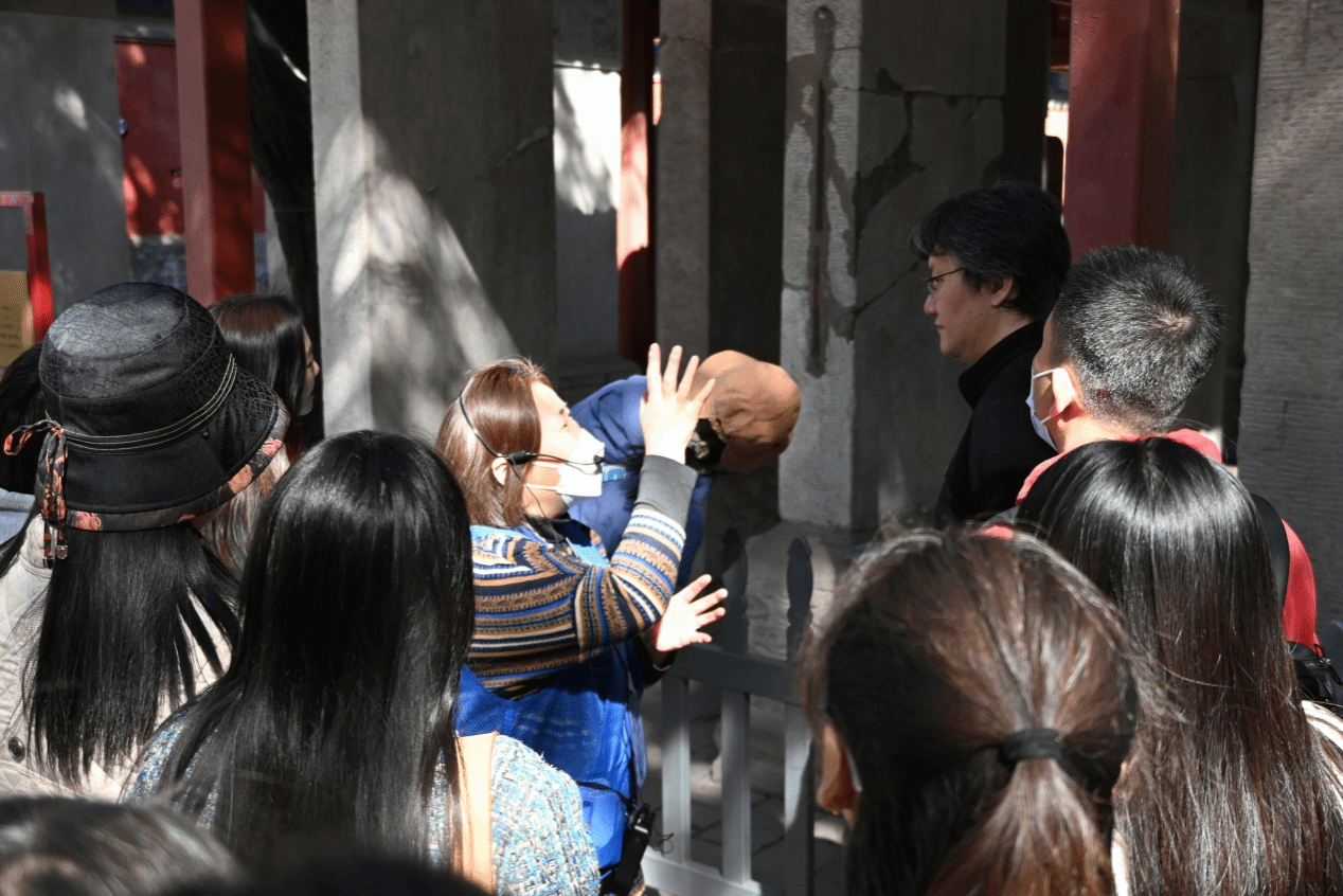 国子监作为古代中国的最高学府,承载着无数文人墨客的梦想与期望,也见证了中华文明的辉煌与传承。漫步在国子监这一古代最高学府中,师生们依次参观了琉璃牌楼、辟雍殿与彝伦堂。“圜桥教泽”“学海节观”,大家惊叹于古人在建筑、器具制造上的精妙巧思,更感受到中国古代建筑中蕴含的文化内涵。“尊师重道”在这里得到具象的体现,也让师生对教育与治学有了更深的思考。