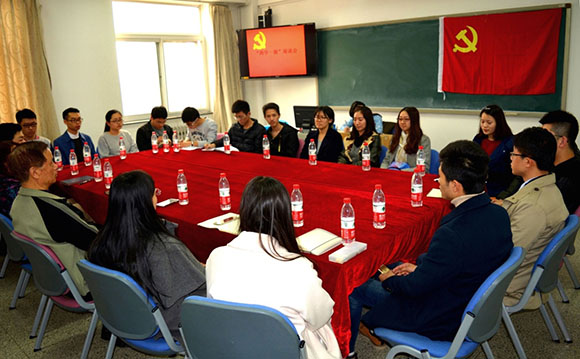 芮雪源老师首先作了简单的开场发言。随后,参会的学生党员依次发言。他们结合大四毕业阶段的学习生活感悟,谈了对“两学一做”的认识,表示“两学一做”重点是在“做”上,在今后的学习生活中,他们要脚踏实地,严于律己,认真履行党员的职责,并建议大家通过微信公众号“学习小组”等网络平台学习党的最新理论成果,紧跟党的步伐。他们表示,在考研的过程中,通过对政治课的复习,对于党章、党规、党纪有了更深刻的理解,提高了自身政治理论素养。