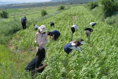 在了解生态建设的实践过程中,实践团还亲身体验了农活的艰辛与乐趣。11名实践团成员来到扎赛营子村的绿色田地中,亲身实践为谷子除草,深刻感受到了土地的厚重和农业的重要性。同时,实践团也看到了现代农业技术在敖汉旗的广泛应用和推广,为当地农业的可持续发展注入了新的活力。