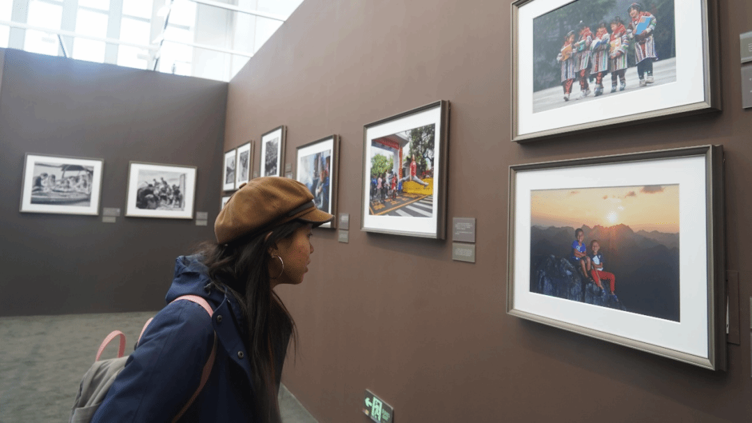 金慷杰:这张照片令我印象深刻,一叶小舟漂在碧绿的湖水中,仿佛漂浮空中。既生动地展现了神州大地自然环境的优美,又是对绿水青山就是金山银山的生动阐释。理念一变天地宽,今天的中国天更蓝、山更绿、水更清,人与自然、和谐共生,映射出中华民族昂扬向上的精神风貌。通过参观展览,我能感受到摄影师们用镜头追逐真相的执着,体会到新闻摄影跨越时空传递力量的魅力。