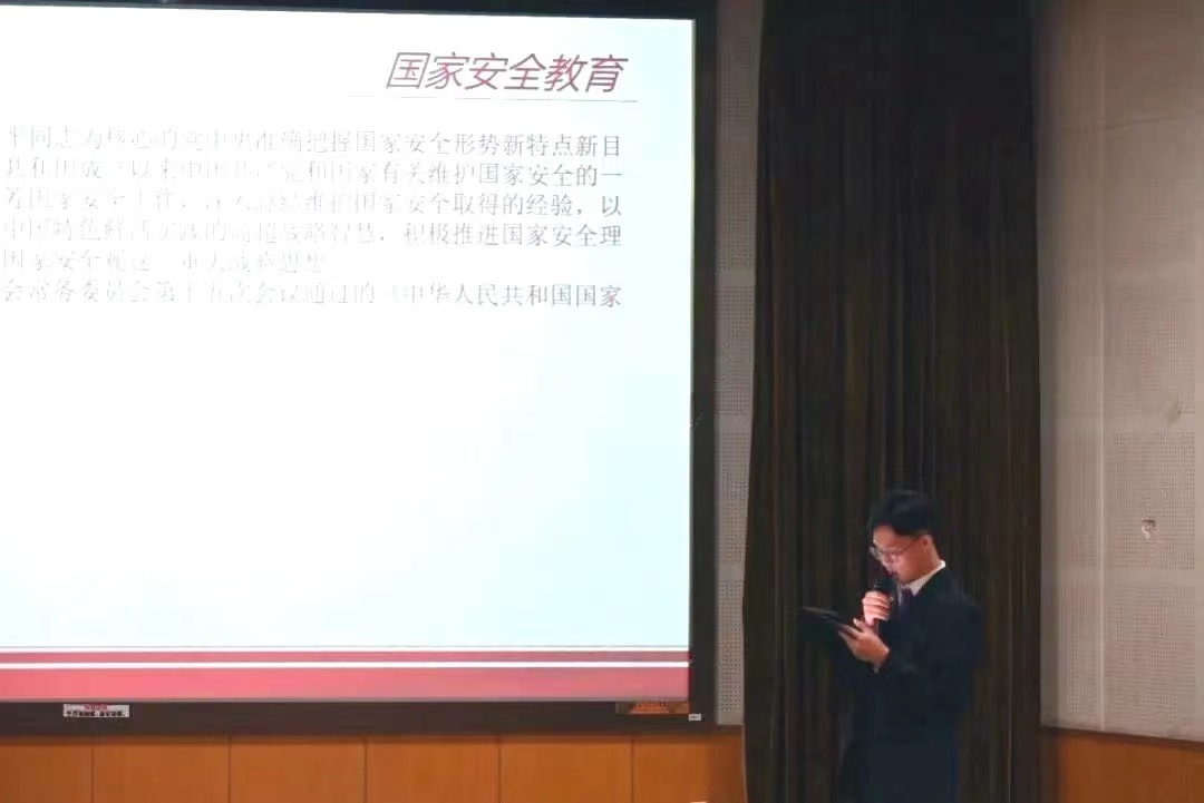 第六组陈梓琛、任建一同学提出关于国家安全教育融入中小学思政教育的提案。他们从国家安全教育的提出与发展这一案由说起,分析了目前国家安全教育在中小学的普及情况存在的问题,并从领导管理、实践操作、教育思政三个层面提出了关于国家安全教育融入中小学思政教育的意见与建议。