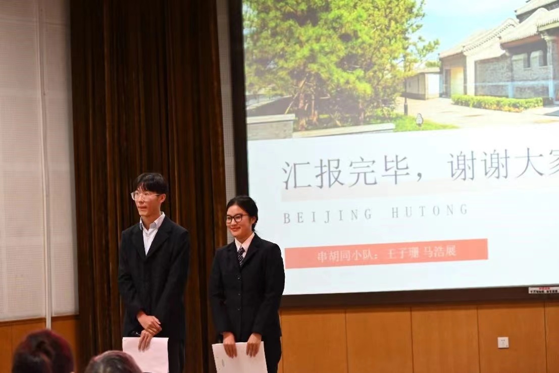 第七组王子珊、马浩展同学立足民生民情调研,对如何实现北京背街小巷长效精细化治理这个问题展开案例研究。运用实地考察和文献分析的研究方法,分析背街小巷现存的民生问题并提出相应解决建议,表达了自己对于城市品质提升的独到见解。