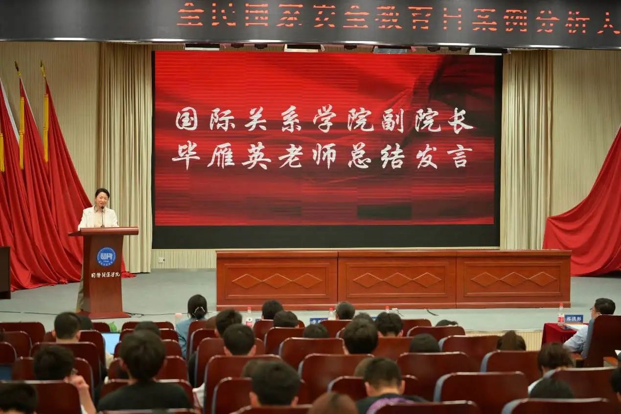 国际关系学院副院长毕雁英对本次活动进行总结讲话。毕雁英副院长对国家安全学院公共管理系承办此次比赛表示认可与支持,对参赛同学表示肯定和鼓励,并强调国家安全方向是我校学科和专业建设的特色,希望广大国关学子继续培养维护国家安全意识、拓宽国家安全视野、提升综合素质能力以助力国家安全发展。