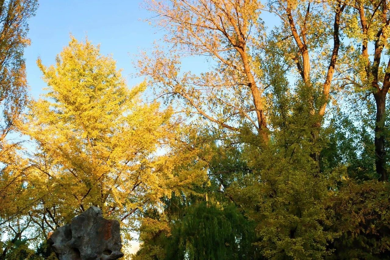 水域周边的白蜡、加杨、钻天杨叶色入目