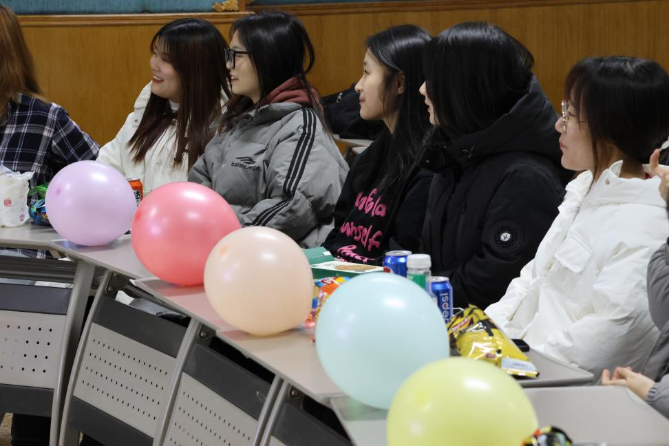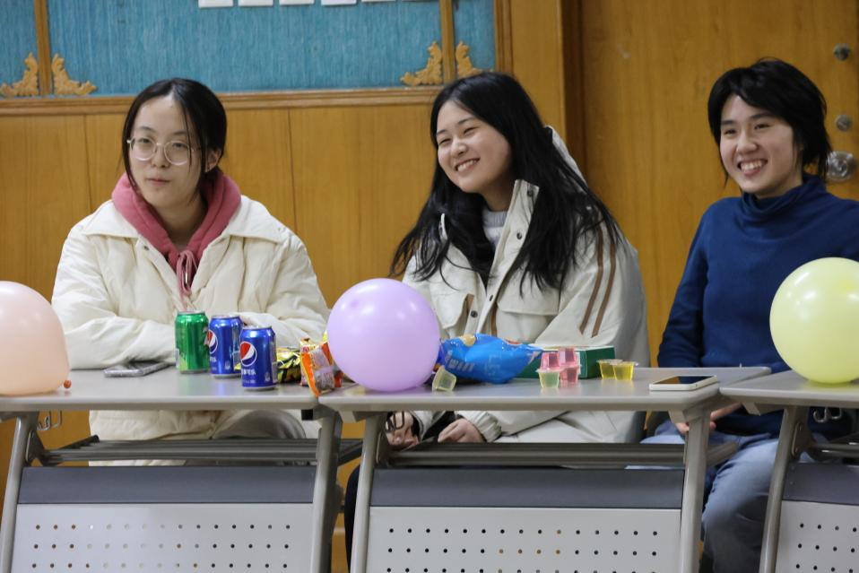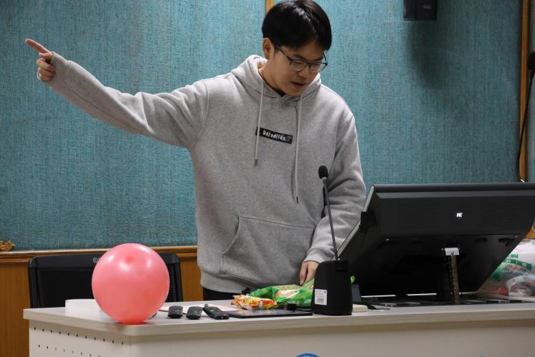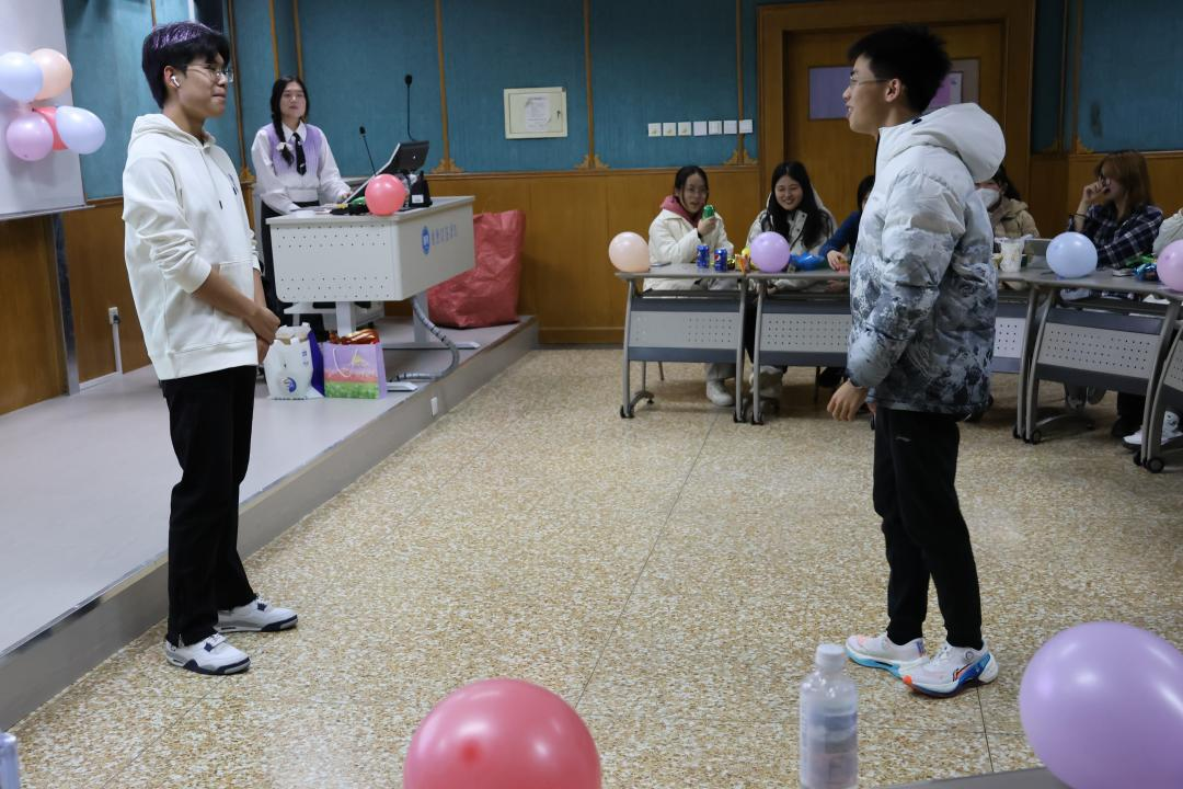为了活跃气氛,零食、饮料、游戏全部安排上!“数字炸弹”“你说我猜”“抢椅子”三个小游戏妙趣横生,上台的选手们贡献出一个个“爆梗”,逗得大家哈哈大笑。每轮游戏的结果决定各个寝室上台展示的出场顺序,让同学们既紧张又兴奋。