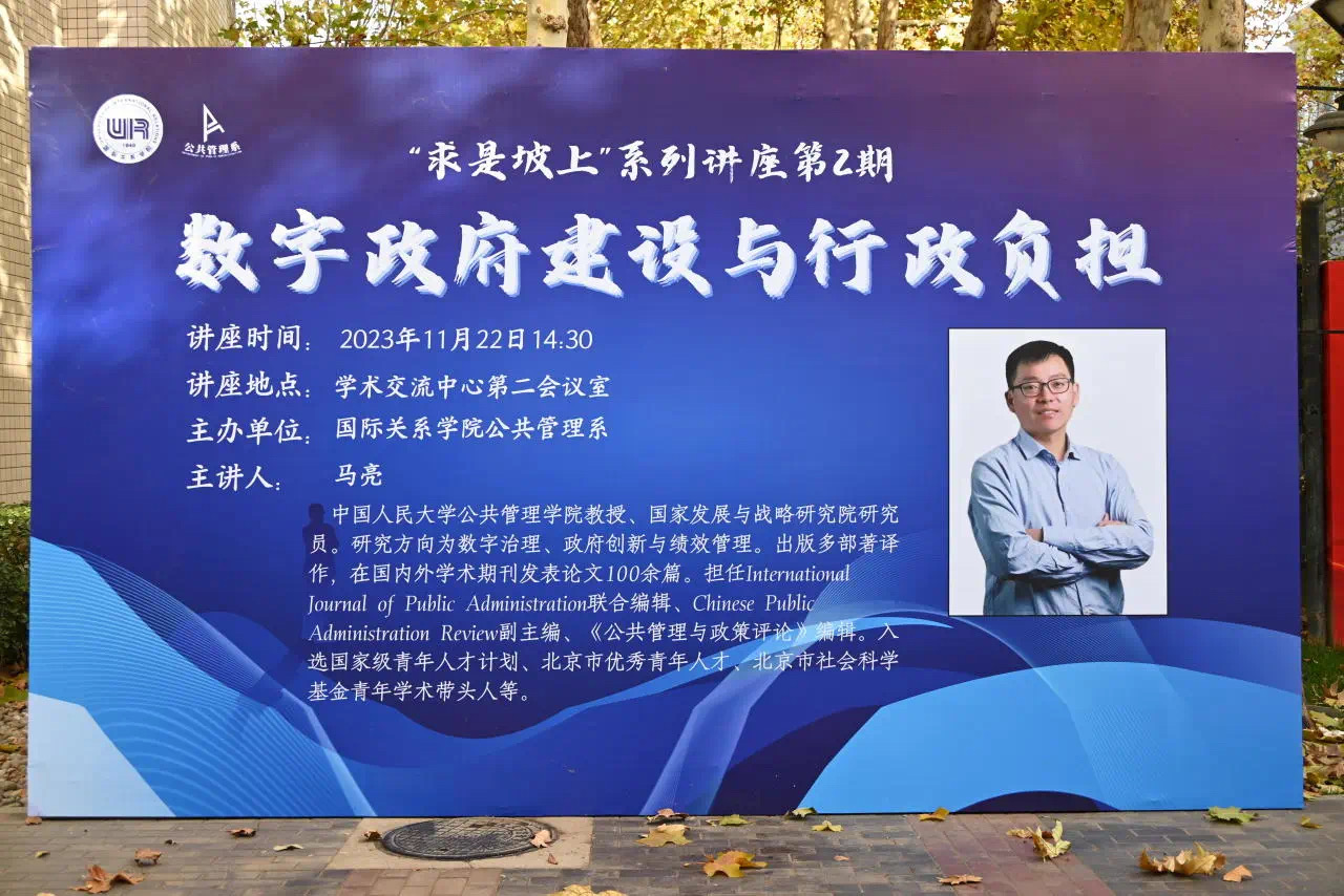 2023年11月23日下午,由公共管理系主办的“数字政府建设与行政负担”学术讲座在我校学术交流中心第二会议室如期举行。本次讲座特别邀请到中国人民大学公共管理学院教授马亮和大家分享关于行政负担的思考与研究。国际关系学院公共管理系葛蕾蕾教授主持讲座,公管系师生参与讲座。
