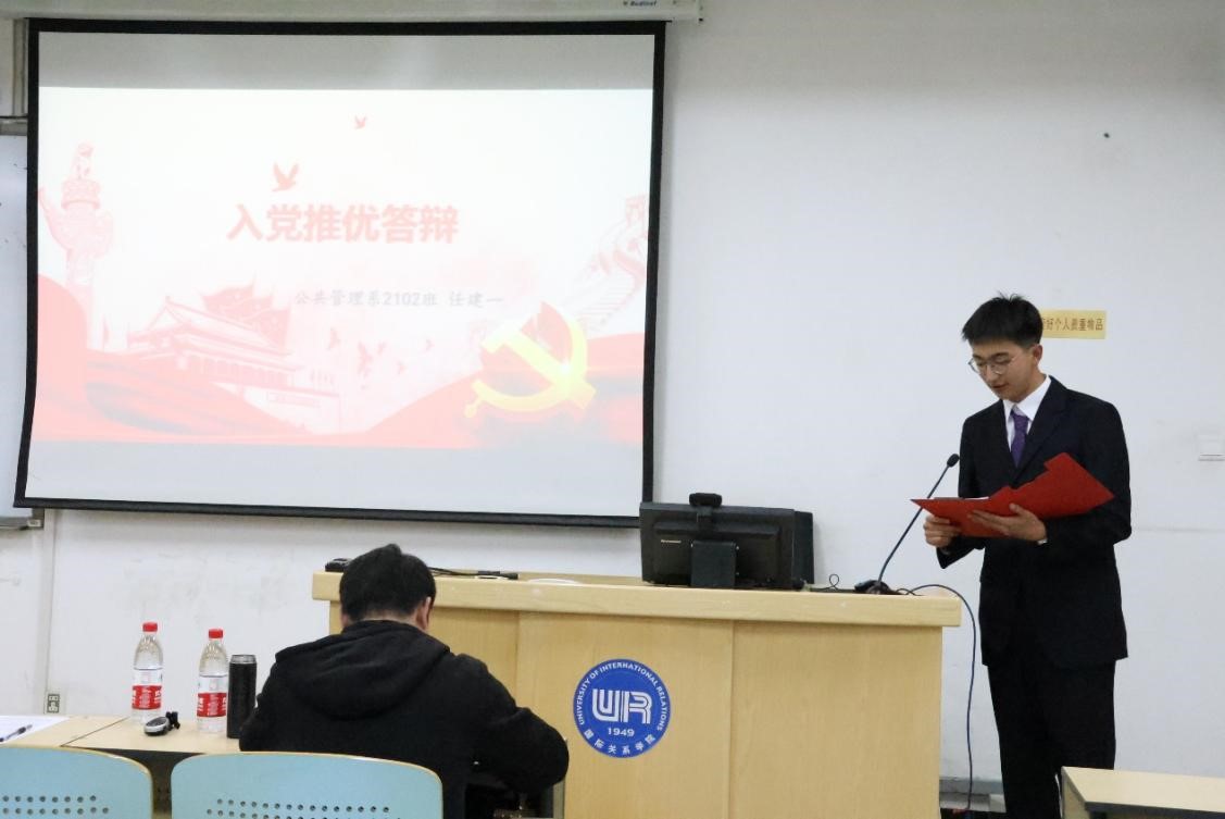 大会第二项,入党积极分子依次上台进行答辩。同学们从入党动机、学生工作、社会服务等方面阐述自己对于党员责任的理解,详细介绍了自己在学习生活中努力向党组织靠拢的实践行动,并充分表达了渴望加入党员队伍,进一步为人民服务的决心。