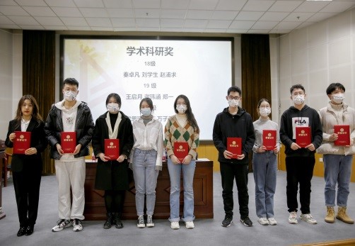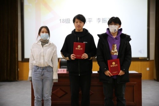 两位老师分别为我系公管之星、优秀党员、特别贡献奖、学术科研奖、优良学风团队、优秀学生干部的获得者颁发荣誉证书。之后,团总支组织委员党思瑶宣读了获得其他荣誉奖项的同学名单。两位老师对受表彰的同学表示祝贺,对同学们过去一年取得的优异成绩表示充分肯定,并表达了对公管系未来前景的美好展望。
