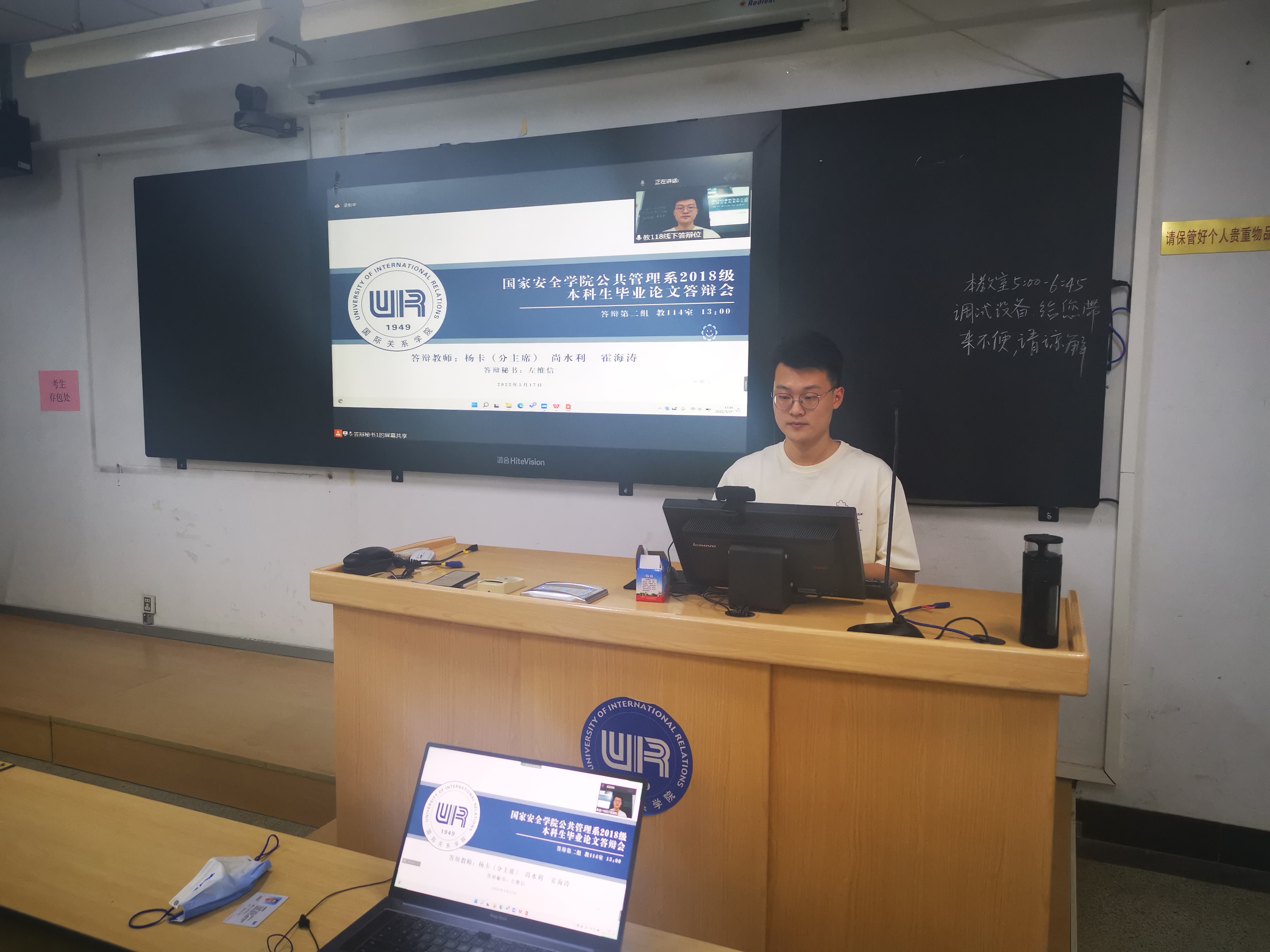 2022年5月18日,我校国家安全学院公共管理系于教学楼112室、114室和118室,顺利举行了2018级本科生毕业论文答辩会。本次答辩会是在疫情防控常态化下,我系积极响应校园疫情防控政策而举办的首场全员线上答辩会,工作突出,意义非凡。作为本届首个圆满完成答辩工作的院系,公共管理系的各位领导老师、答辩委员、答辩秘书以及参与答辩的同学们团结一致、共克时艰,为保障“答辩进行时”做出了突出贡献!