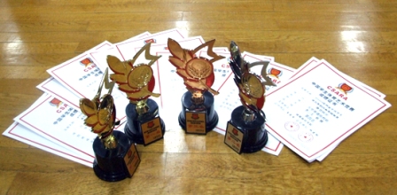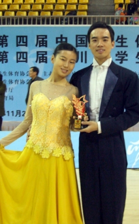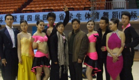 我院国标舞代表队于2008年11月21日赴成都参加“第四届中国学生体育舞蹈(国标舞)锦标赛”并且满载而归——共捧回4座奖杯、在7个项目上取得名次,创造了建队以来的最好成绩——总共派出四对选手参赛,由田振华教授与荣丽老师带队。
