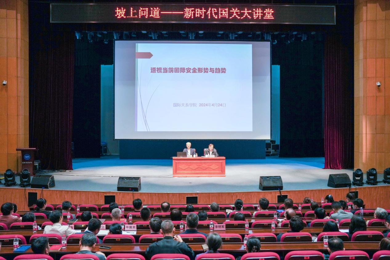 4月24日晚7时,我院党委理论学习中心组邀请第十四届全国政协委员、中国现代国际关系研究院院长杨明杰研究员来校,以“透视当前国际安全形势与趋势”为题,在学术交流中心礼堂举办“坡上问道—新时代国关大讲堂”讲座。讲座由党委书记幸明军主持。