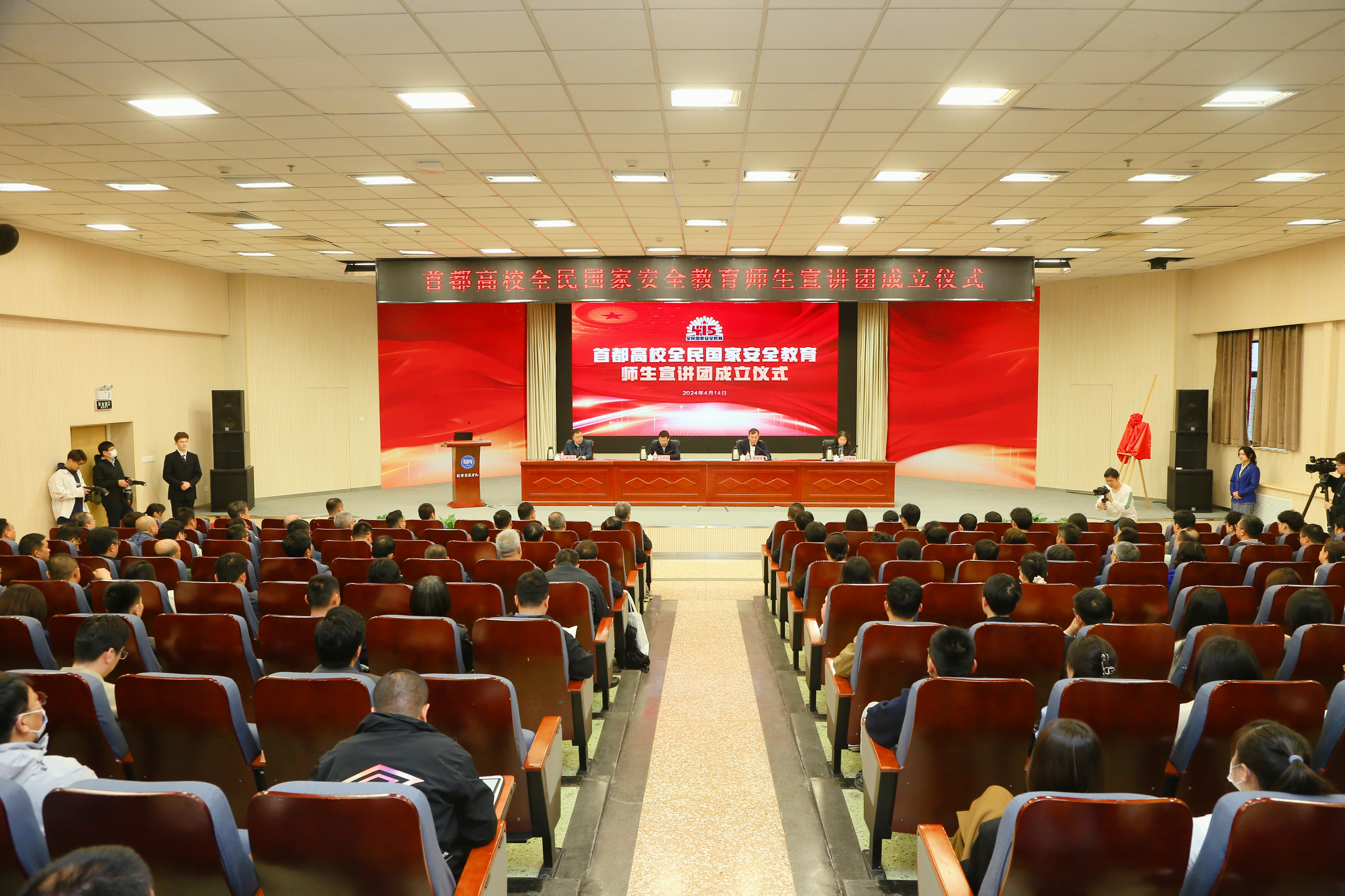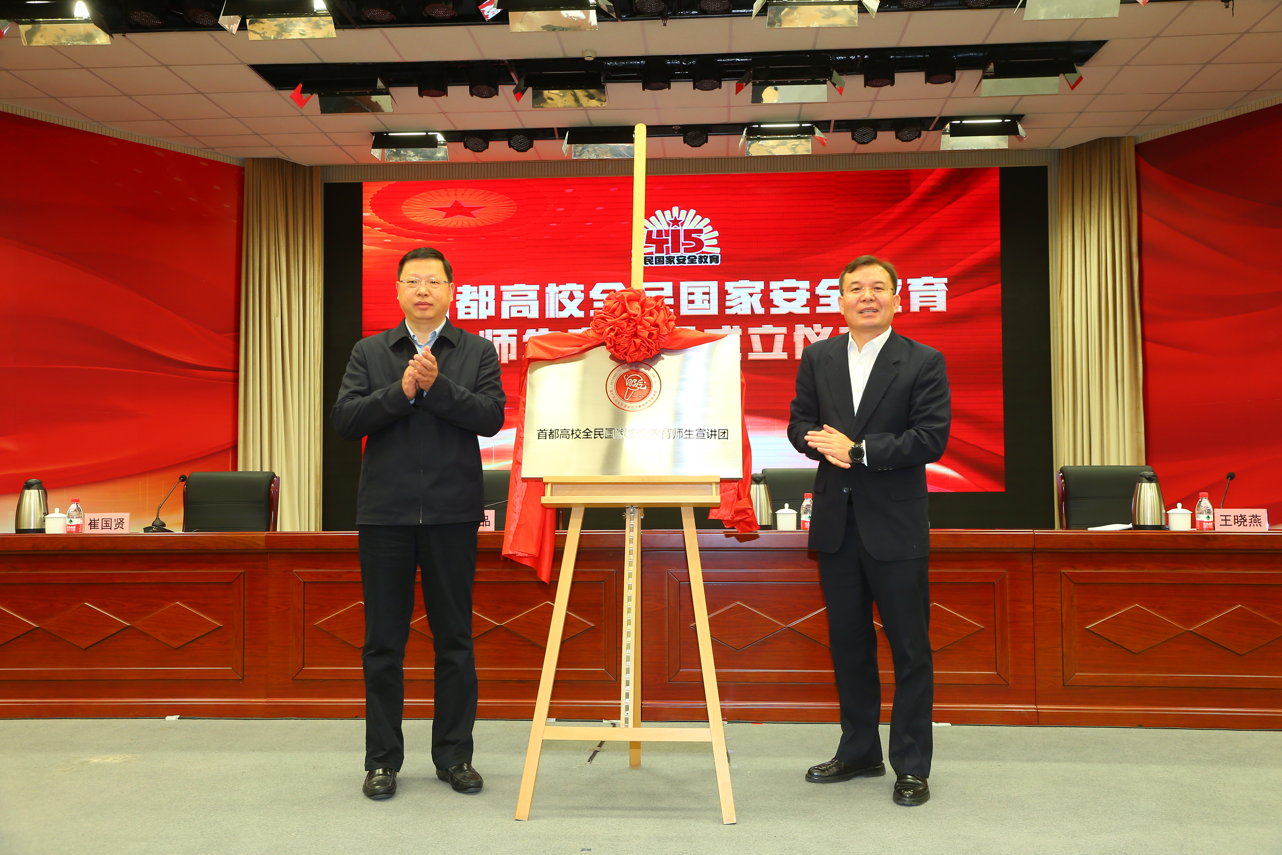 在“首都高校全民国家安全教育师生宣讲团”成立仪式上,王达品、幸明军共同揭牌,宣布师生宣讲团成立。