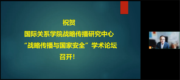 中国现代国际关系研究院传播中心主任、《国家安全研究》主编张焱宇以《多视角下的国际战略传播与国家安全》为题,指出国际战略传播等舆论工作关系党的工作全局,是治国理政、定国安邦的大事,也是国家安全的必争之地。从国家安全视角看,战略传播是工具载体,国家安全是内涵目标,二者既有部分与整体的关系,某种场合下也可交叉或转化。